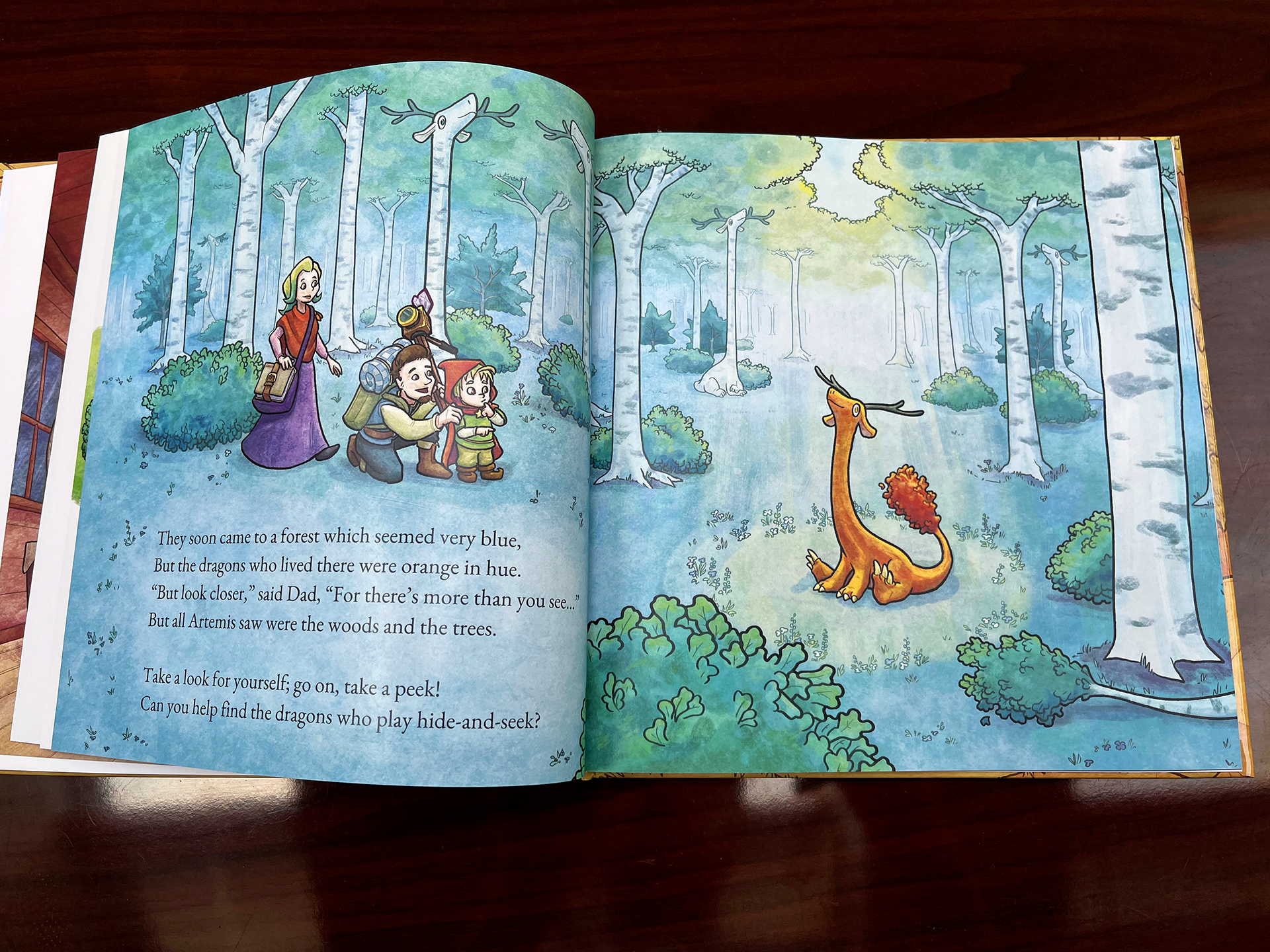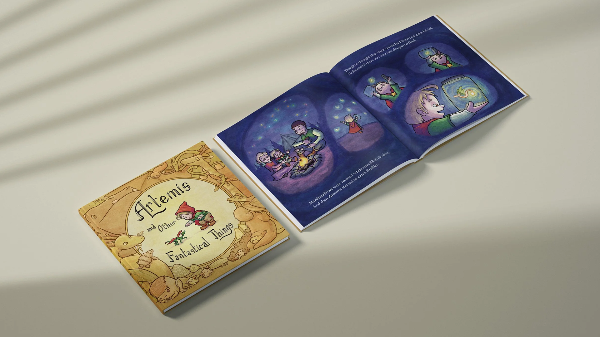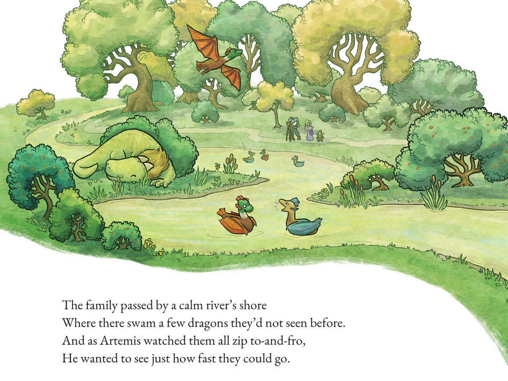 Some projects aren’t difficult in terms of execution, but they can be difficult due to the gravity of the subject matter. Such was the case when we were approached by UVA Children’s to create a book to honor and commemorate a young boy named Artemis McRae who had passed away while in their emergency department. Working closely with the hospital and the parents of Artemis, we decided to celebrate his sense of wonder and adventure by writing a story where Artemis must travel with his parents through a magical land to find “dragons and other fantastical things.” The book Artemis and Other Fantastical Things is freely given out to visitors in the pediatric emergency department, but is not available for retail elsewhere.