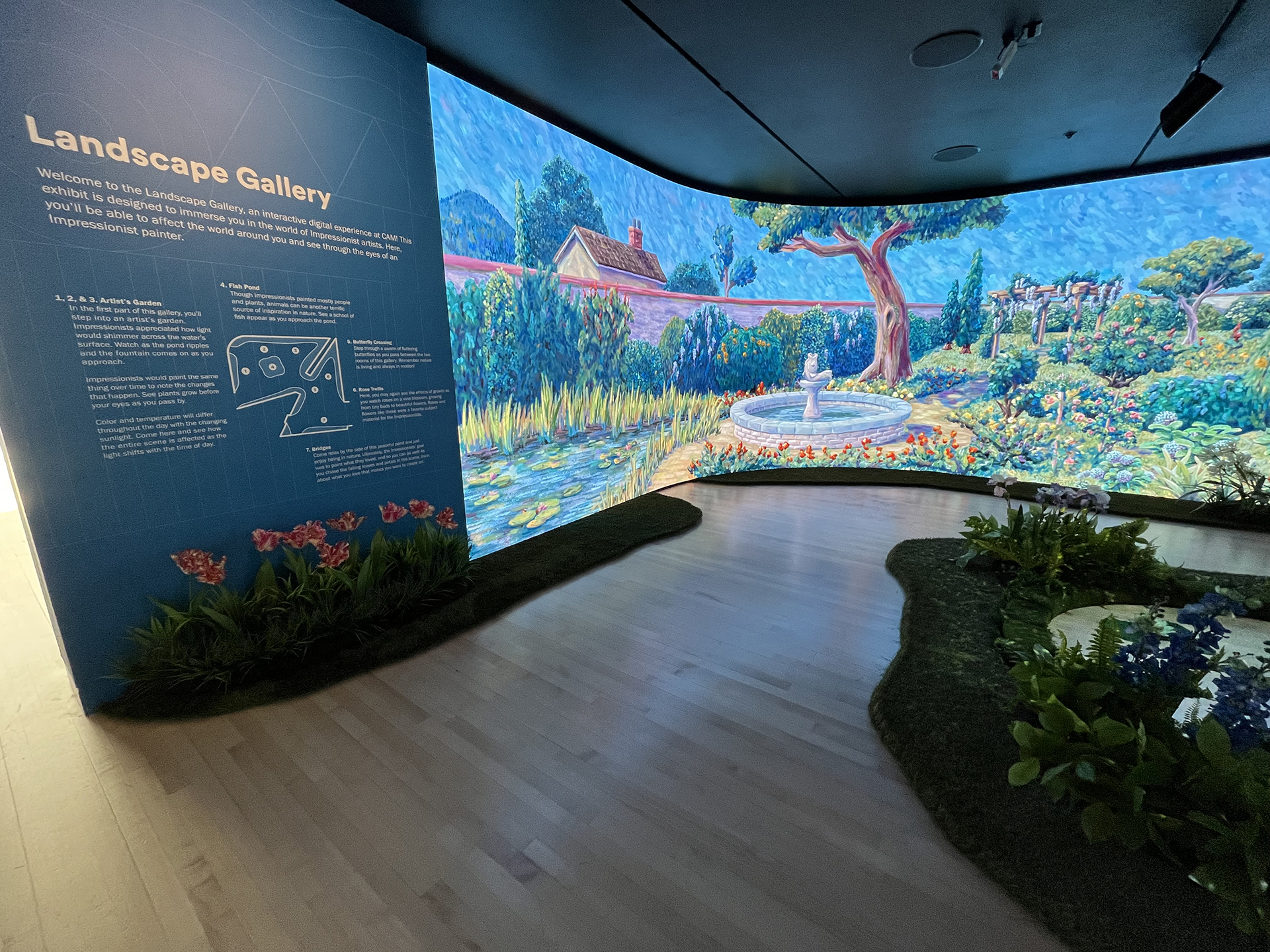 Telfair Museums approached us at FREN about helping them to create a new, cutting-edge exhibition for their Children’s Art Museum (CAM). This exhibition would include interactive projections, color-changing ambient lighting, fun tactile stations for children, and a massive curved LED screen as the pièce de résistance. For a theme, we decided to explore the museum’s extensive collection of American Impressionist paintings, focusing in particular on Frederick Carl Frieseke’s The Garden Umbrella.